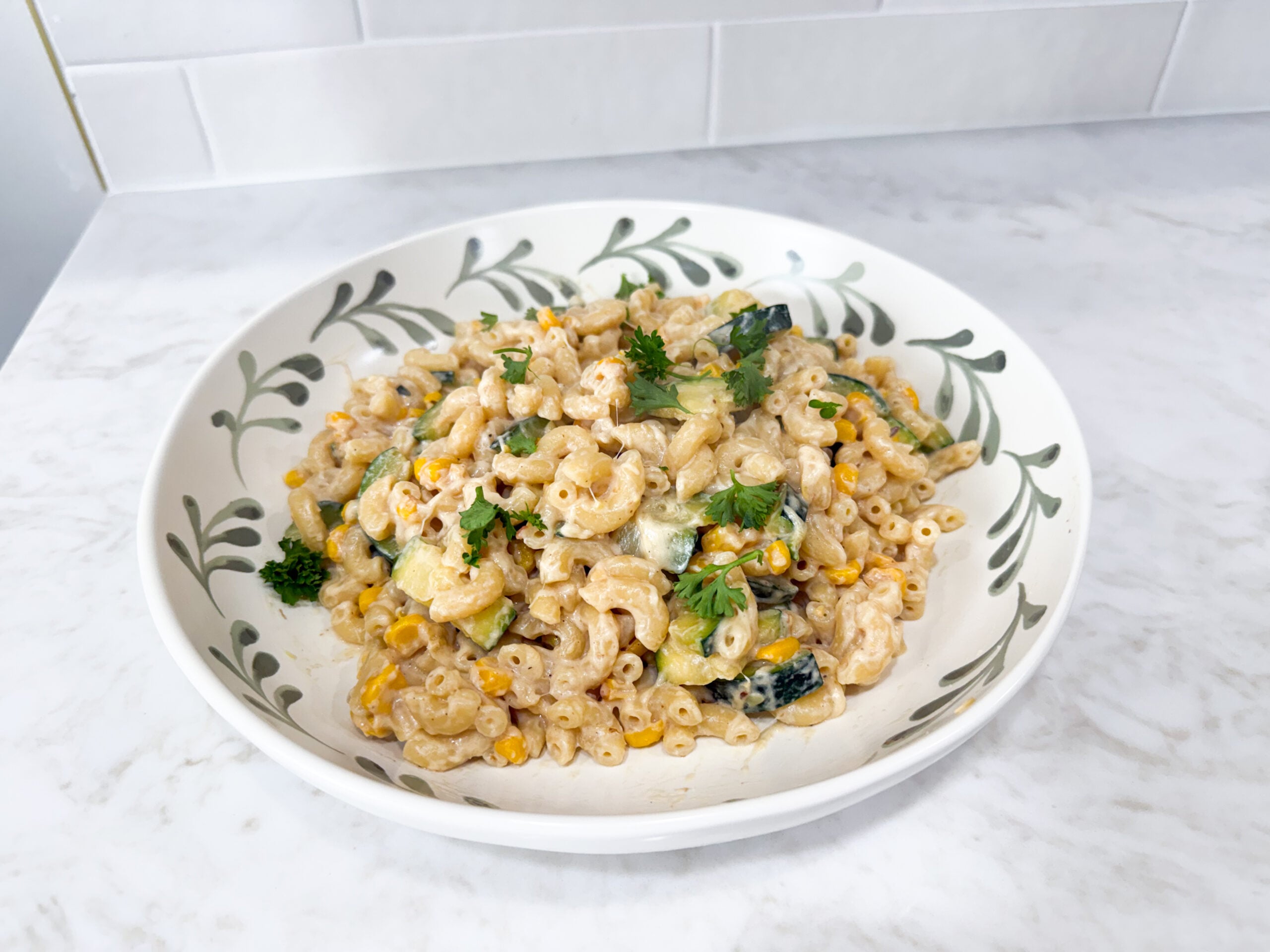 This creamy pasta is rich, comforting, and packed with simple veggies. It’s one of those meals that feels indulgent but is made with super affordable ingredients.