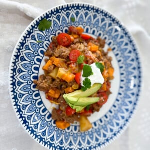 I made this yesterday as part of my “Eat Down the Kitchen” project…aka, eating what’s on hand. I followed the recipe as written, adding a smidge more taco seasoning and…oh lord…this is very tasty and filling…thank you much for this recipe
