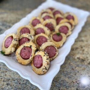 Super Easy and a huge hit! I added an egg-wash prior to cutting than cooking that worked really well and served with choice of stone ground mustard, Jalapeño-whiskey ground mustard and/or Datil Pepper sauce (thick) for dipping. There were no left overs.