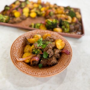 I love making this recipe because it has a steakhouse-style flavor without the extra effort. The garlic butter coats the steak evenly, while the vegetables roast until tender and lightly browned. It is especially useful when I want a dinner full of protein that still includes vegetables. This is a reliable choice when I need dinner to come together quickly.