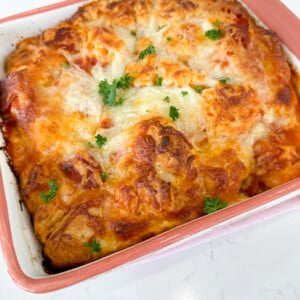 Italian Sub Casserole is saucy, cheesy, a little spicy, and a whole lot delicious! Three types of cured meat, two types of cheese, lots of tomato sauce, and pillowy biscuit dough bake together to form a slice of deliciousness that you’ve never had before! It’s a cross between pizza, an Italian sub sandwich, and a pasta bake! Whatever it is, it’s going to be your family’s new favorite meal.