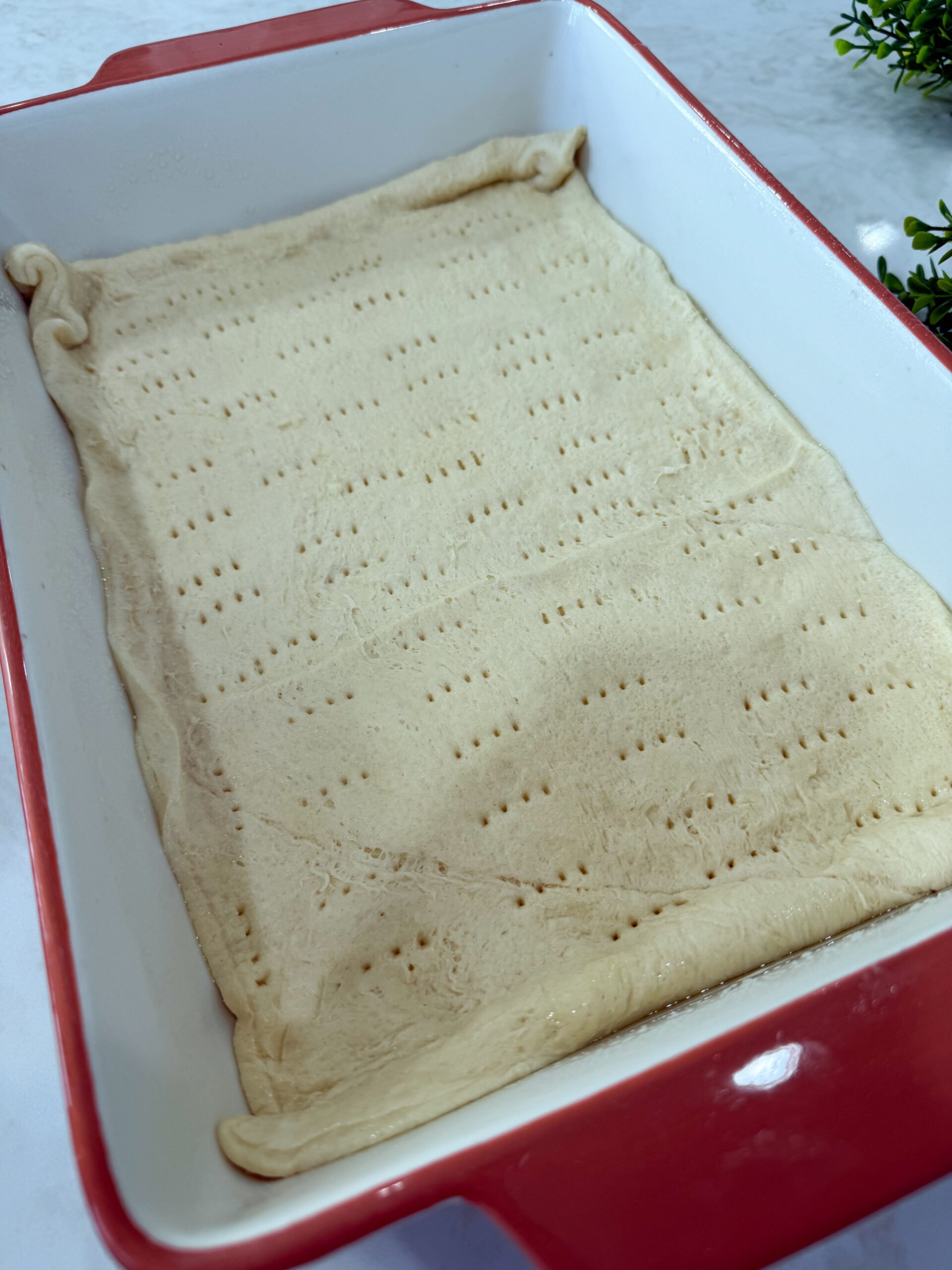 - Lay one crescent sheet in dish, poke with fork, and bake 10 minutes.