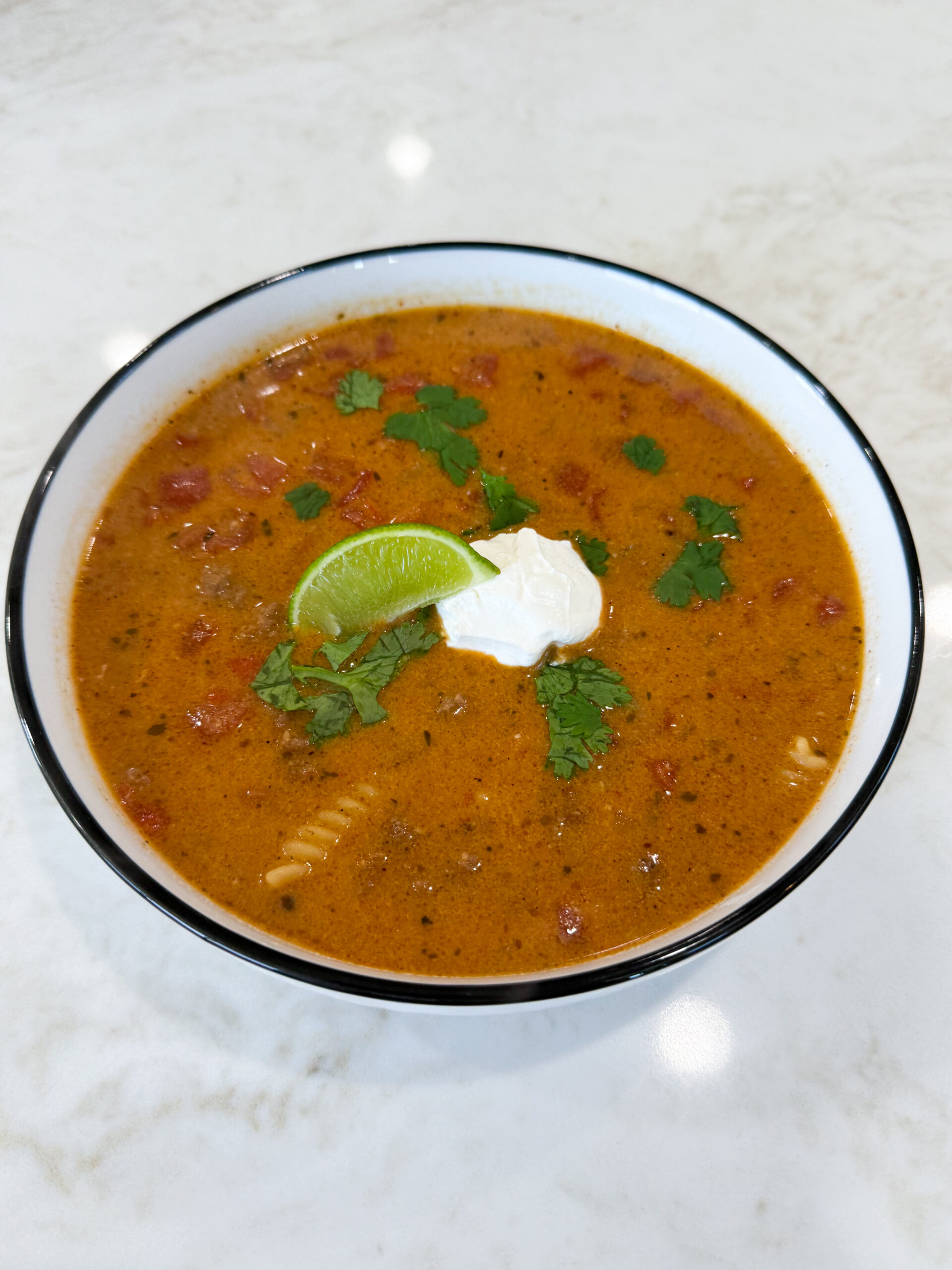 This easy Queso Chili recipe combines everything you love about chili and queso in one delicious one-pot dinner. It’s made with ground beef, pinto beans, rotini pasta, and a quick homemade cheddar queso that makes it rich and creamy. This hearty recipe is perfect for busy nights when you need something filling, budget friendly, and full of flavor.