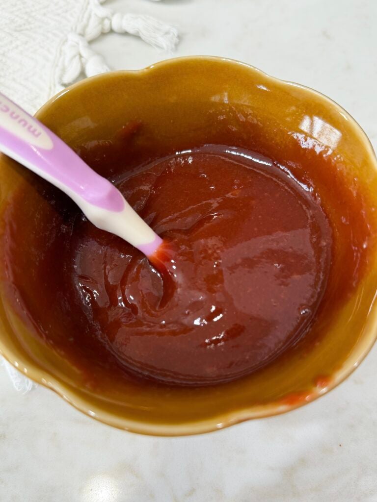 Step 3: In a small bowl, stir together remaining ketchup, brown sugar, and Worcestershire sauce.