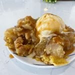 Bake for 45-50 minutes or until golden brown. Serve with vanilla ice cream and caramel sauce and enjoy!