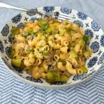 Cover and cook for about 10 to 15 minutes, or until the pasta is tender, stirring occasionally. Stir in the milk, sour cream, and cheese and heat until warmed through. Serve with chopped pickles on top and enjoy!