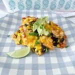 Spray a 9x13 baking dish with nonstick spray and pour the casserole in and spread it out. Sprinkle the remaining cheese over the top, cover with foil, and bake for 15 minutes. Remove the foil and bake for an additional 25 minutes. Serve and top with your favorite toppings. Enjoy!