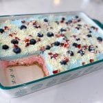 Start on the blueberry layer. Whisk the boiling water and jello together. Whisk in the yogurt then stir in the blueberries and cool whip. Pour this mixture out evenly on top of the cheesecake layer. Refrigerate for 30 minutes. Top with optional toppings and enjoy!