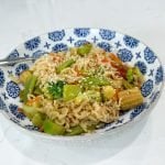 To a large skillet over medium heat, add the oil. Once hot, add the vegetables and cook for 7-8 minutes or until they start to turn golden brown around edges.