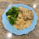 (OPTIONAL: Brown the pork chops in a skillet over high heat with olive oil for about 1 minute on each side.) Add the pork chops into the crockpot in one layer. Pour the rest of the mix from step 1 along with the remaining 1 cup of cheese.